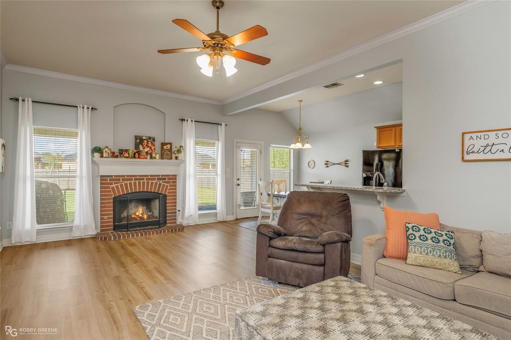 This lovely 3-bedroom, 2-bathroom home with huge backyard in Savannah Place is waiting to be your home! The spacious living room and open-concept floorplan make this home perfect for entertaining. Flowing from the foyer, the living room features high ceilings, a cozy fireplace, and gorgeous laminate wood floors. The kitchen and dining area offer more room to host friends and family, with the kitchen boasting modern appliances and fixtures, as well as a breakfast bar for more casual meals. The oversized primary suite is sure to be a favorite spot to relax after a long day, complete with a spacious ensuite bath featuring dual sinks and large closet. The two additional bedrooms share a full bath, ensuring both privacy and convenience. With no carpet in the main living areas, maintenance is sure to be a breeze, and ample storage will help keep you organized. Outside, the huge backyard with full privacy fence can't be missed! Whether you want to garden, BBQ, or maybe install a pool, there is plenty of room to spare. Conveniently located near BAFB plus local shopping and dining. Don't wait, schedule your private your today!